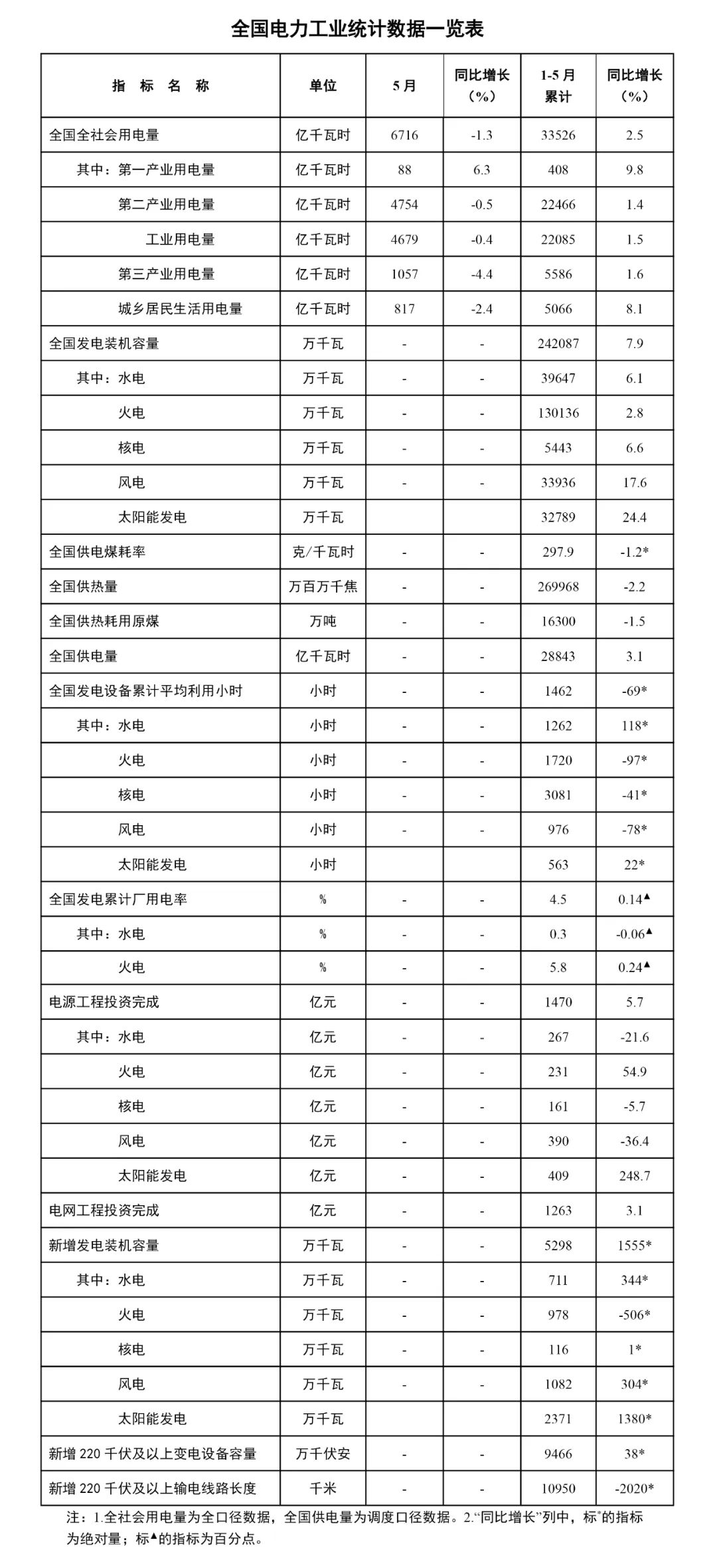 國家能源局發(fā)布1-5月份全國電力工業(yè)統(tǒng)計數(shù)據
